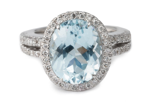 5.20CT Aquamarine 18K White Gold Engagement Ring with Diamonds